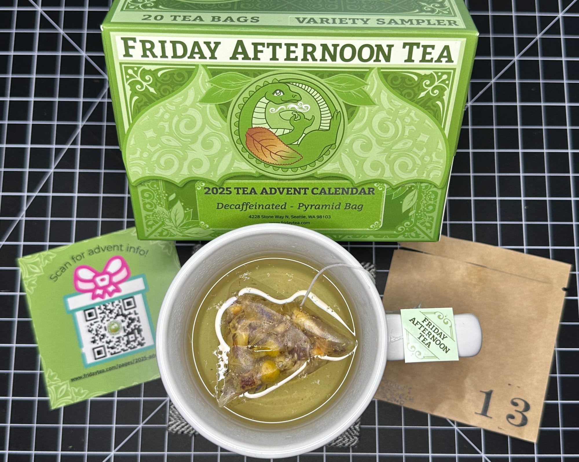 Lastly, we have Friday Afternoon Tea decaf Day 13 Tea advent in bags.