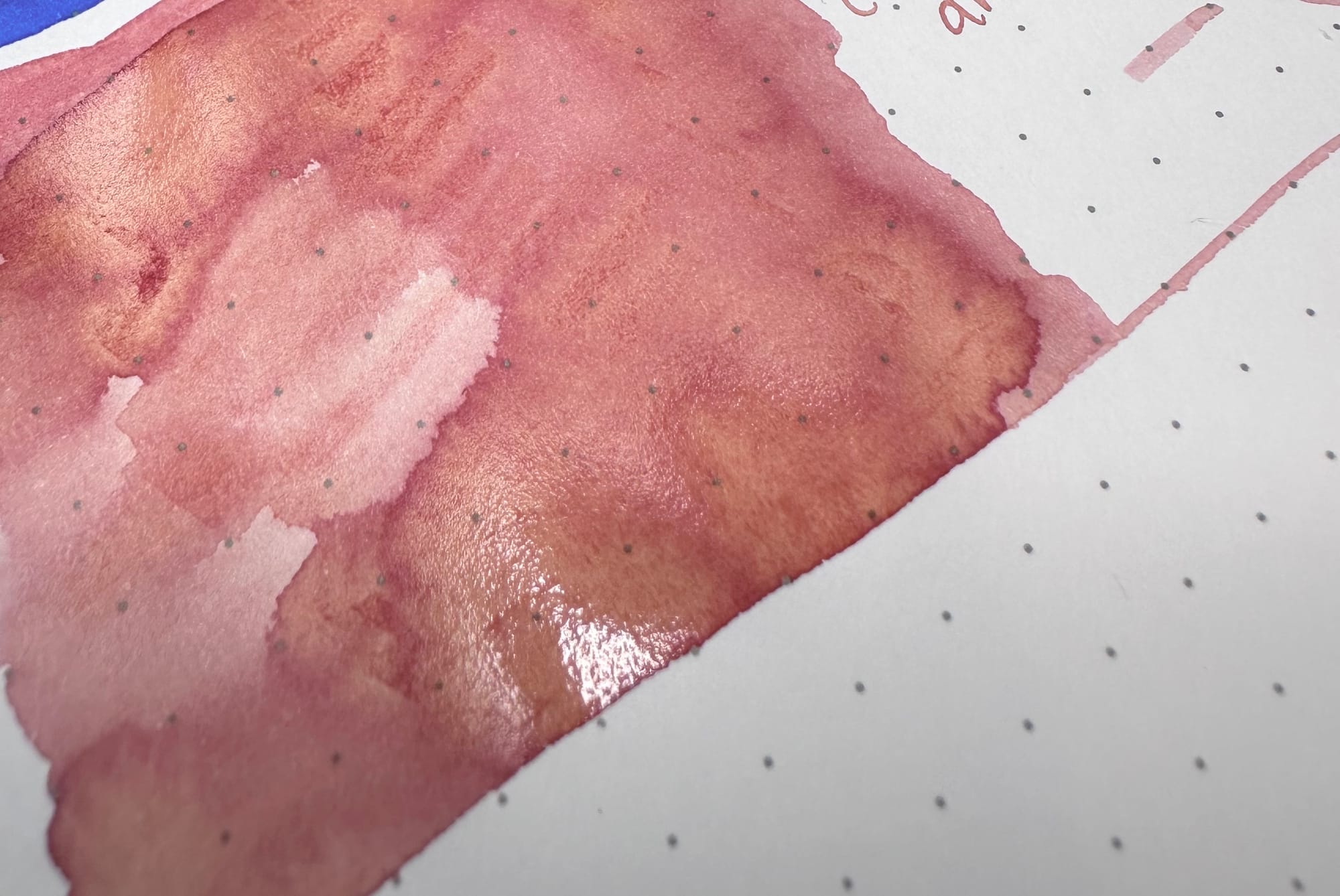 This one, I'm actually afraid to describe what I was thinking when swatching this. I have a lot of experience in the medical world and it was not pleasant imagery that this ink evoked. My absolute first thought was ... wound care related. (I'm trying VERY hard to be diplomatic here!) It's not the most appealing pink I've ever swatched and even dry it's a weird one. It's not terribly legible in the finer nibs (though it did darken up when dry) and I'm struggling to get past my initial experiences with this ink. I did doodle a blush compact to try to get my head back in a pleasant pink place.