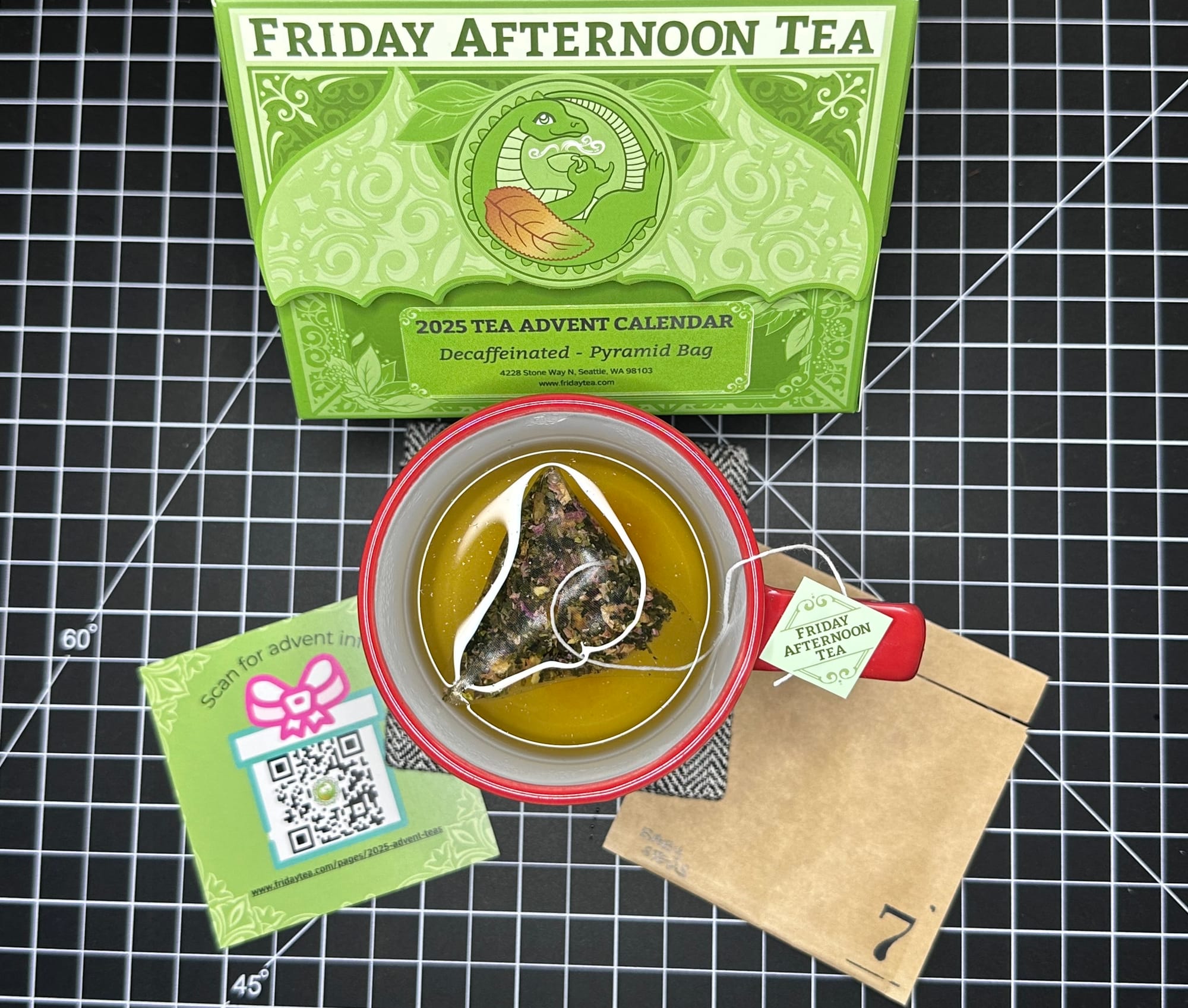 Last up is the Friday Afternoon Tea decaf advent Day 7 which is a slightly minty, herbally comfort.