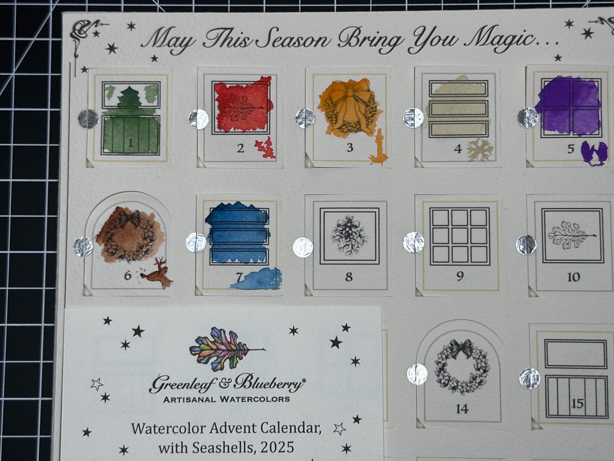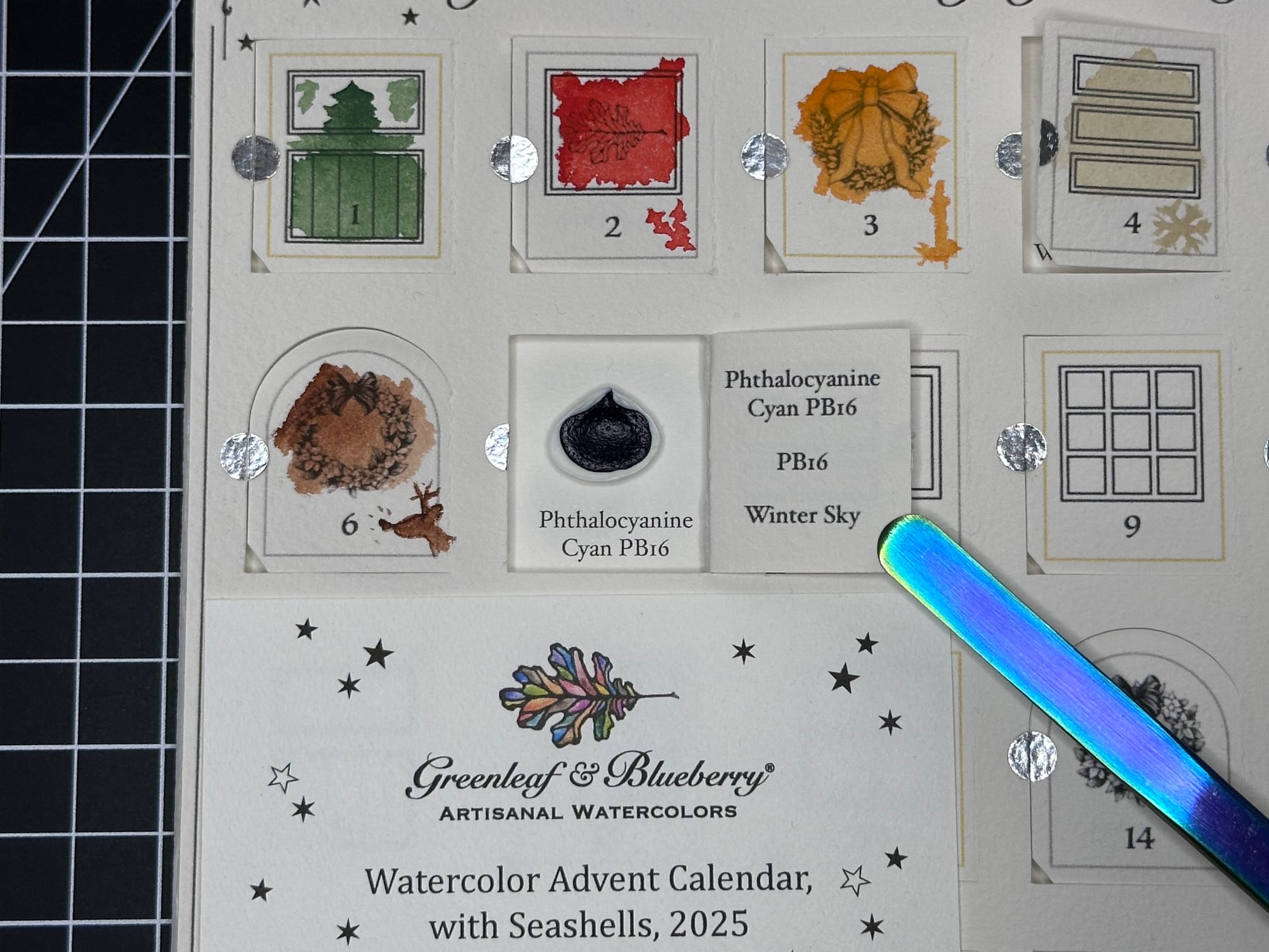 Next up is the Greenleaf & Blueberry watercolour advent in shells. Day 7 is a primary cyan blue, Pthalocyanine Cyan pigment number PB17.