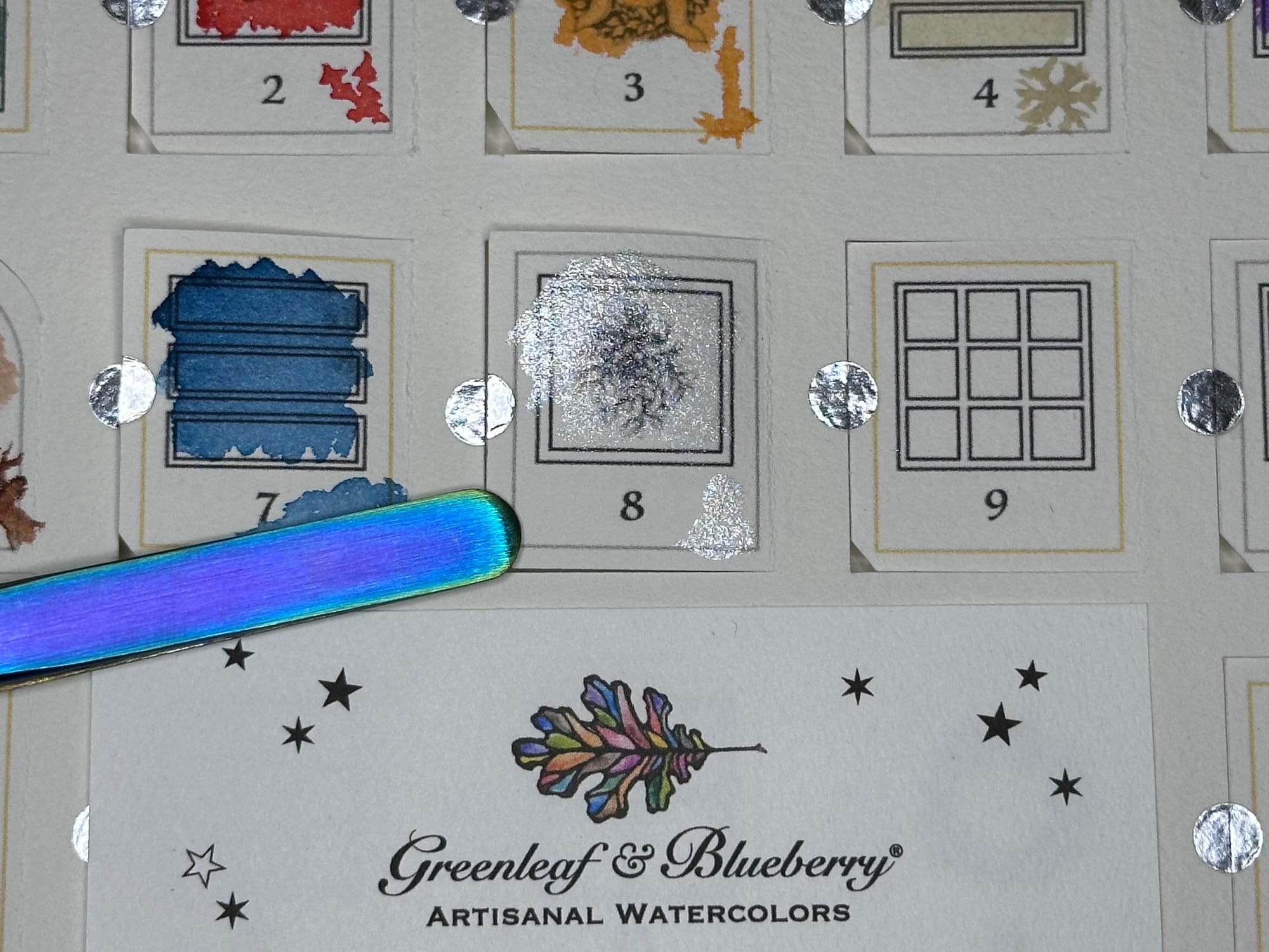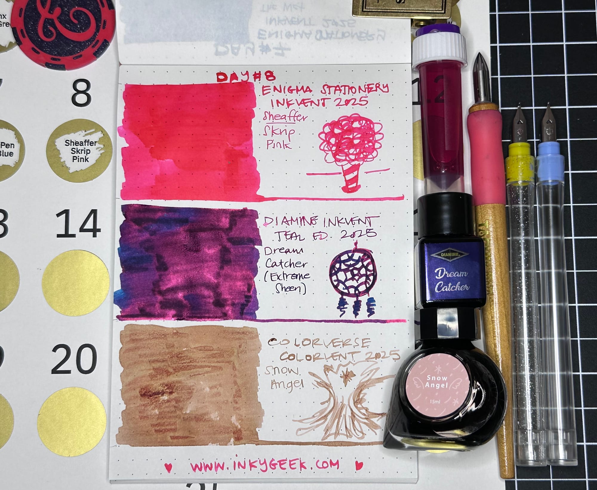 So day 8 wasn't as traumatic as day 7 was, for sure. We're still plodding along doing the inkvent swatching/tea drinking/painting/photos one night and the next night doing the photo editing & typing things up. I really enjoy doing the swatches, less so this part of things, but it's so much easier only doing it in one place. I might take a day off this week (the week of 21-27 Dec. 2025) to just relax, but we'll see.