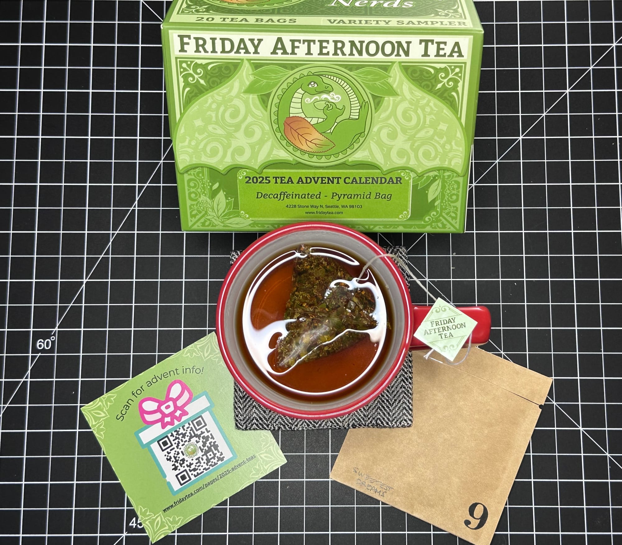 Friday Afternoon Tea 2025 Decaffeinated in Pyramid Bag Day 9 is in Sweetest Dreams, a calming, sleepy blend of coziness. Friday has a blog post about this tea, and how her Grandmother was her inspiration not only for this blend, but her love of tea in general. It's a beautiful blend of rooibos, chamomile, & peppermint. This is such a comforting hug of a tea, even cold, the chamomile is nostalgia in a cup, for me. It's a sleepytime tea done just perfectly. This is another one I'd like to try again with honey in a bigger mug. Perfect warmup for these gloomy rainy cold evenings of winter, or as a relaxing wind-down during a hectic summer night.